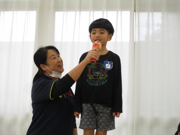 まずは誕生日会。「お名前は?」「何歳になりましたか?」「大きくなったら何になりたいですか?」など、質問していきます。(*^^*)