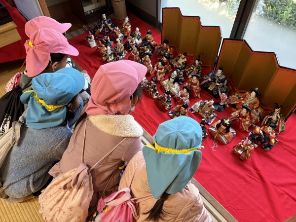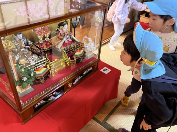 施設内には、様々なお雛様が飾られていて、こども達は興味津々に観ていました。