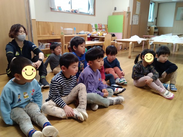 3歳児のぱんだ組の子どもたちに、健康教育を行いました。