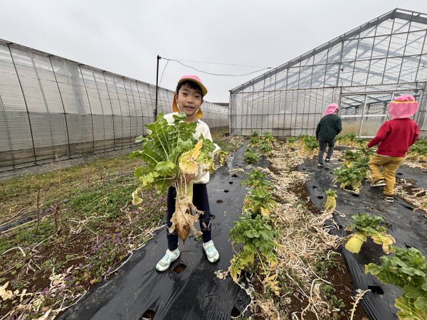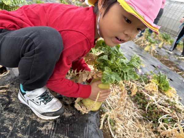 大根の収穫では、以前よりも土が固くなっているので、踏ん張らないと抜けませんでした。