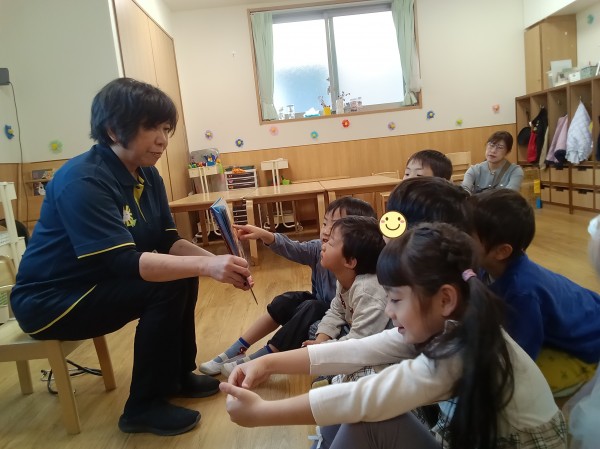 お母さんのお腹の中で育って、生まれてからこれまでご両親に大切に育ててもらったから、みんなの心臓は今元気に動いていることを話しました。「心臓が止まったらどうなるの?」という質問には、「心臓は酸素や栄養を体に送っているから、動かなくなったら体全部が動かなくなって死んじゃうんだよ。だから、みんなの心臓だけではなく、お友だちの心臓も大切にしないといけないね!」と締めくくって、卒園児への贈る言葉にしました。