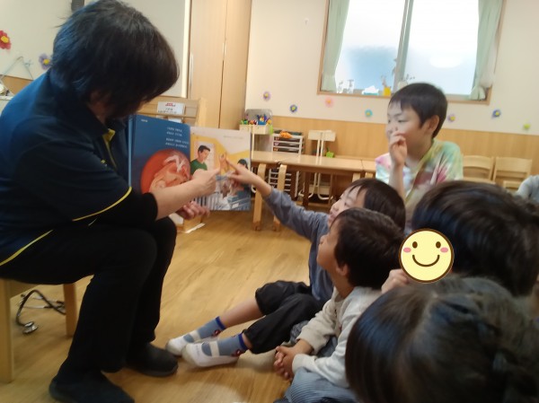 もうすぐ卒園して小学校に入学するぞう組のこどもたち。自分がどんなふうにこの世に生まれてきたのかを知って、自分の命はもちろん、他人の命も大切にしてほしいという願いを込めてお話をしました。