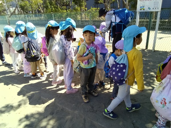 今日は、うさぎ組(2歳児)とぞう組(5歳児)の2クラスで、お散歩に行きました。