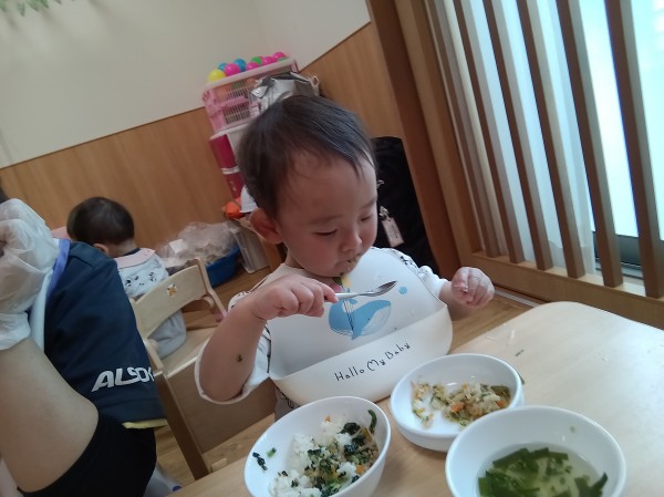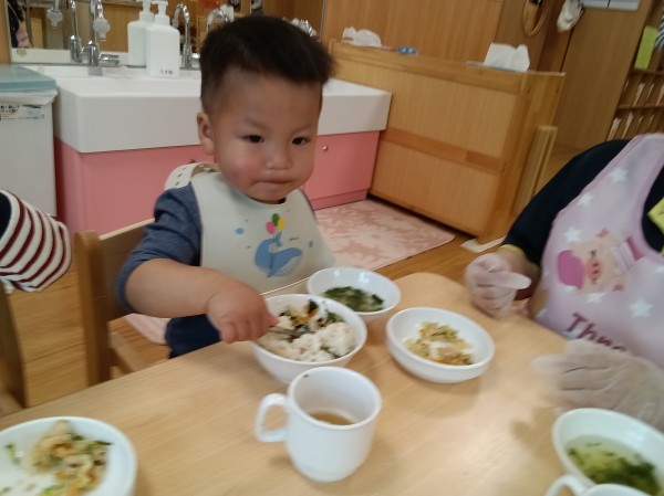 新入園のお友だちと、初めて一緒にご飯を食べました。