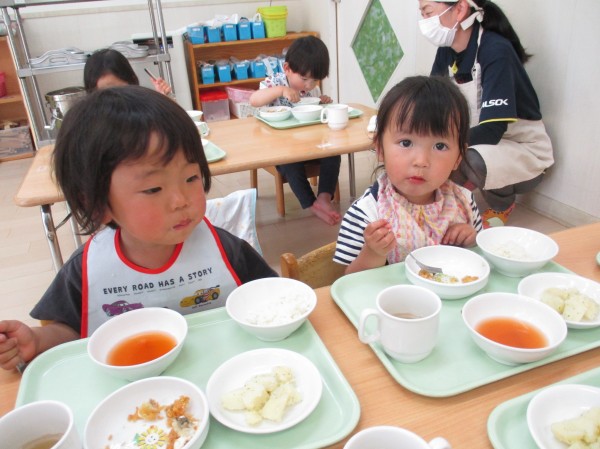 こちらは2歳児クラスの子ども達‥こちらもパクパク食べています!