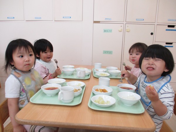 新年度が始まり早3週間‥今日は、こどもの家の子ども達が大好きな、美味しい給食の時間を覗いてみましょう!