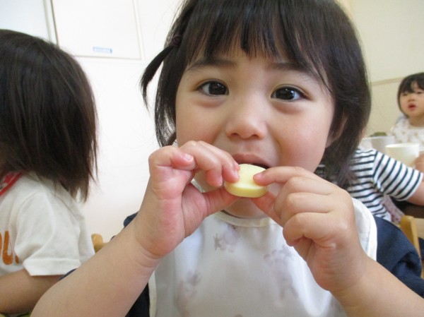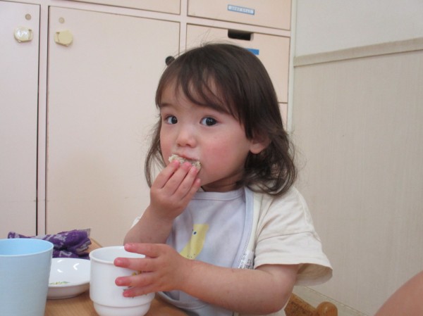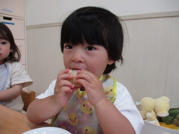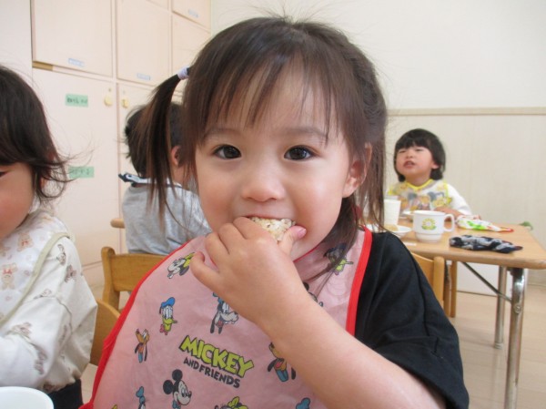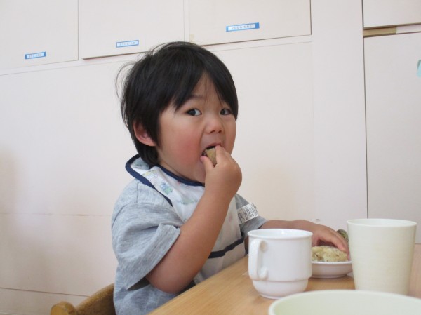 今日のおやつは…牛乳・焼きおにぎり・チーズですって。