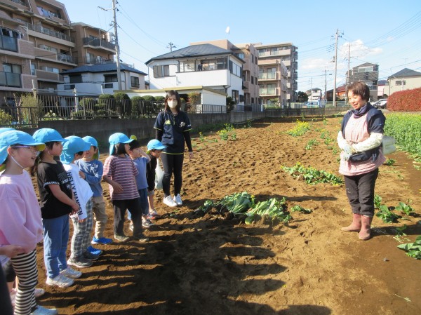 毎年、さつまいも堀りの際にお世話になっている【旬菜園】さんの畑で、苗植えの様子を見学・菜の花摘みをさせていただきました。