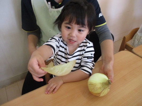 先日、食育活動で新玉ねぎの皮むきに参加したらっこ組さん☆