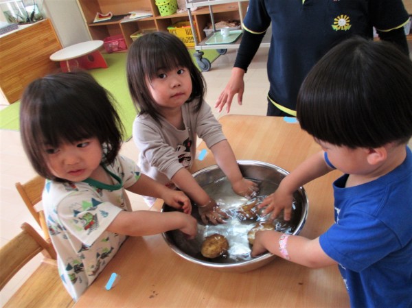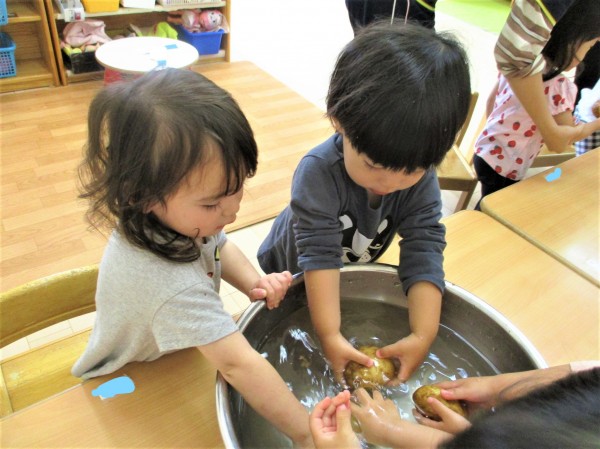こどもの家・志木中宗岡 食育 じゃがいも洗い(らっこ組)