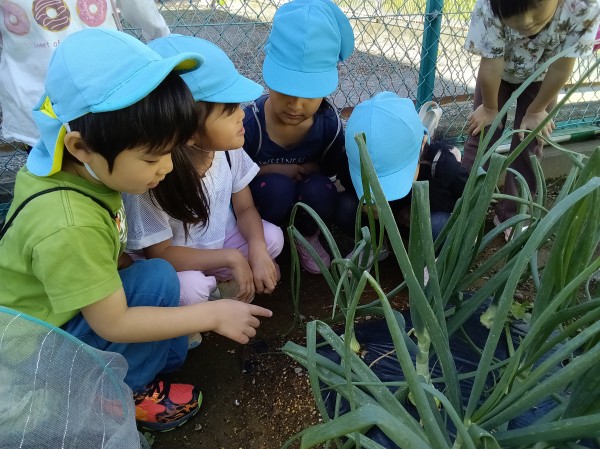 畑に行って、どれだけ作物が大きくなったのかを確認しました。