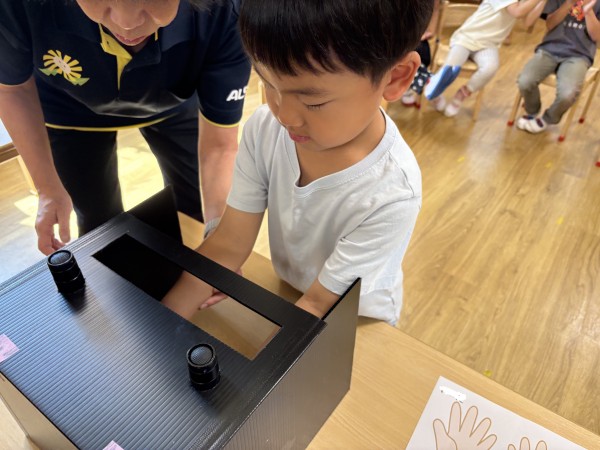 手洗いチェッカーを使って、手洗いチェックを行いました。