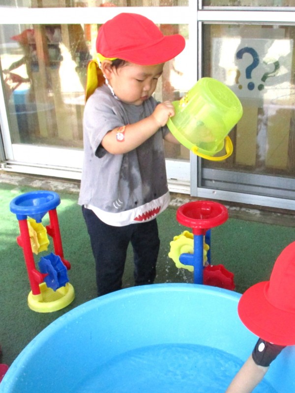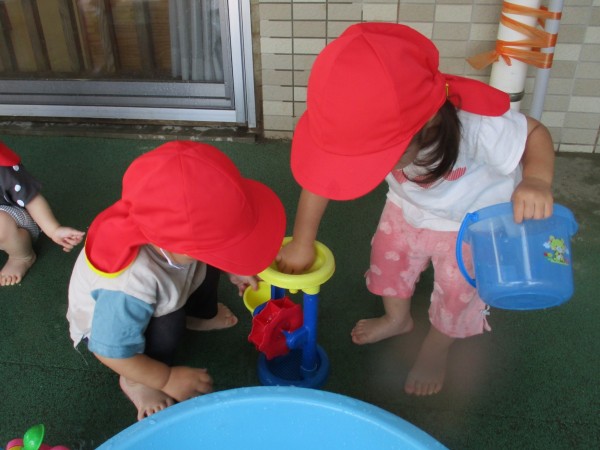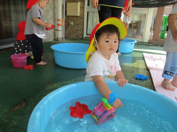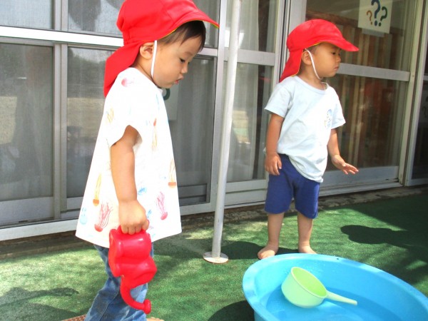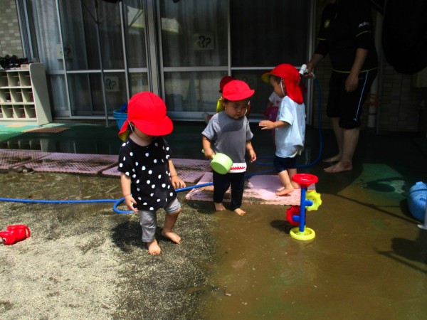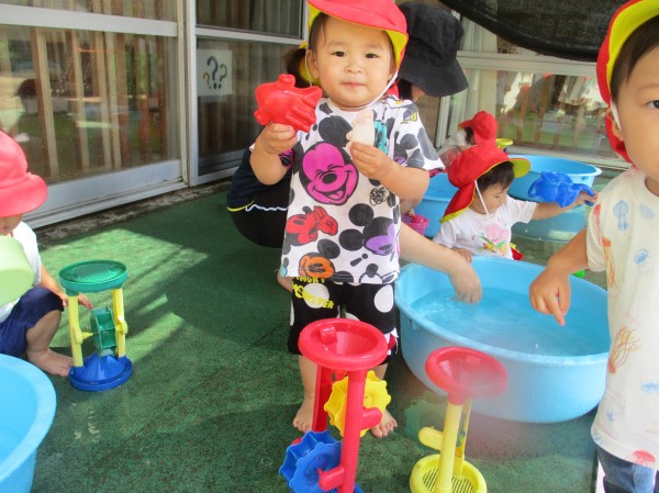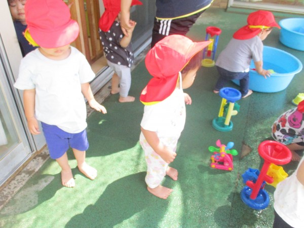 こどもの家・志木中宗岡 水遊びスタート!あひる組(1歳児)