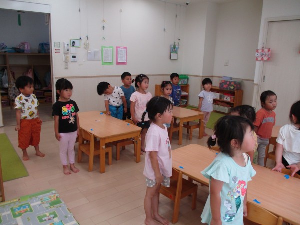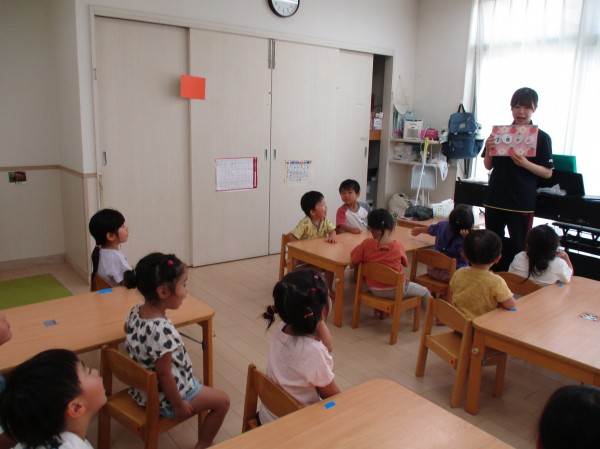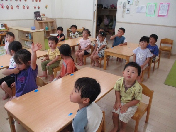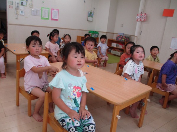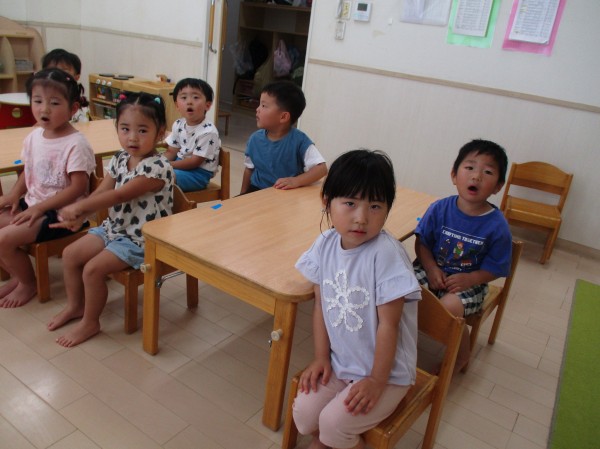 幼児クラスになって朝の会をするようになり、みんな上手に椅子に座ってお話を聞いてくれます(*^-^*)