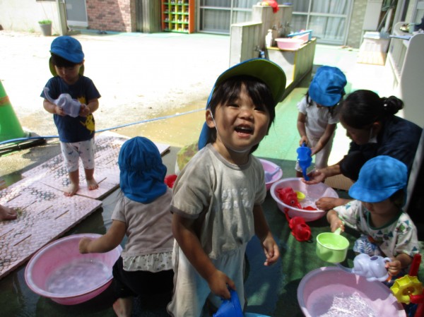 泡を出して洗濯ごっこをしたり、これからも夏ならではの遊びを楽しんでいきたいと思います。