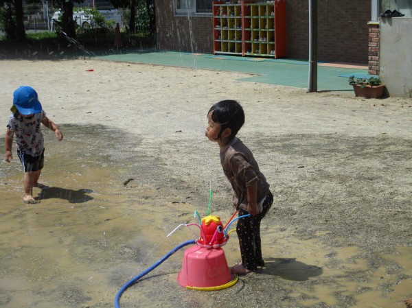 噴水マットではピューッと出て来る水に大喜びの子どもたち。お友達と一緒に足踏みをして楽しそうですね(^▽^)