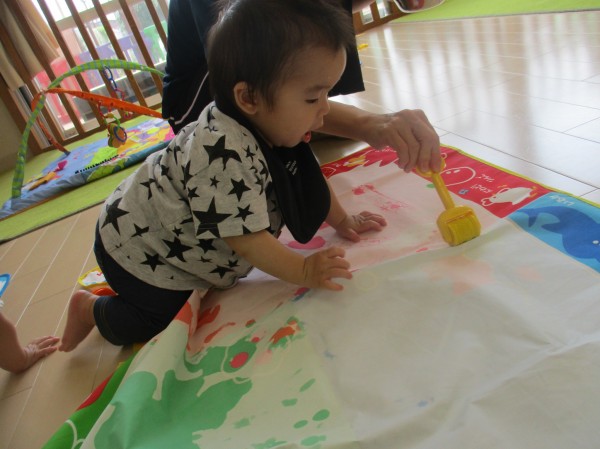こどもの家・志木中宗岡 水スタンプで遊んだよ☆たまご組(0歳児クラス)