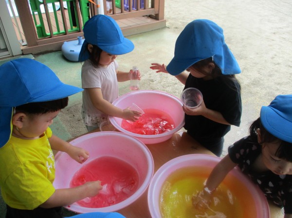 暑い日が続いていますが、らっこ組の子ども達は氷や色水遊びに夢中です(*^^*)そんな様子をちょこっとご紹介します♪