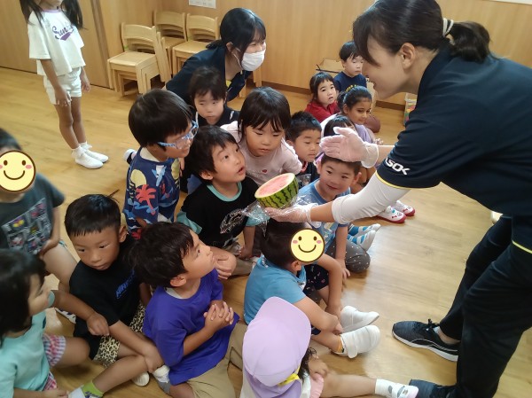 保育園にスイカを持って帰りました。