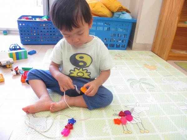 こどもの家・志木中宗岡 らっこ組(2歳児)紐通し遊び★