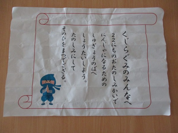 なんと、お楽しみ会の少し前に、クラスに忍者からお手紙が届き、招待してもらったのです!