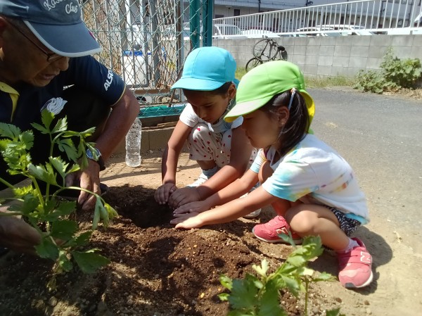 ブロッコリーとセロリの苗を植えました。