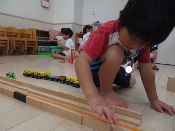 「みてー!えきをつくったよ!」と、保育者に見せてくれました。♬