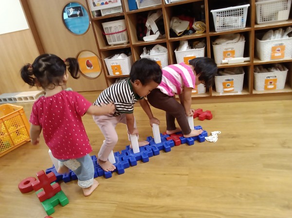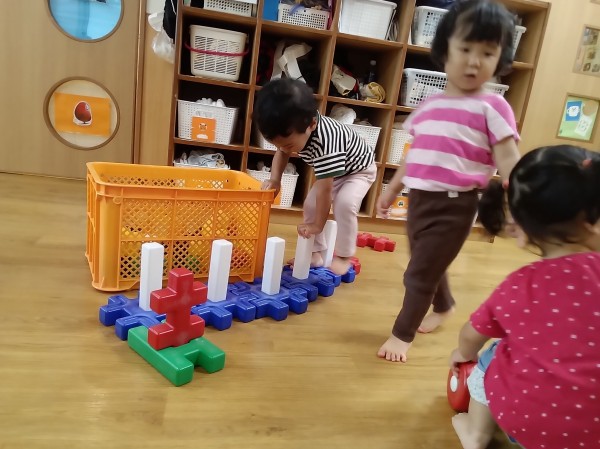 大型ブロックで遊びました。