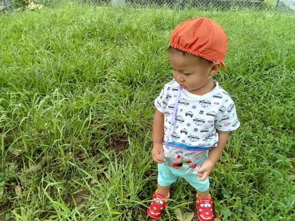 以前作ったお散歩バッグを首から下げて、公園にお散歩に行きました。お散歩バッグを持っていることで、いつも以上に歩く気持ちが高まり、全員が歩いて出発することができました。公園に着くとどんぐりや葉っぱがたくさん落ちていて、うれしそうに自分のバッグの中に入れていました。