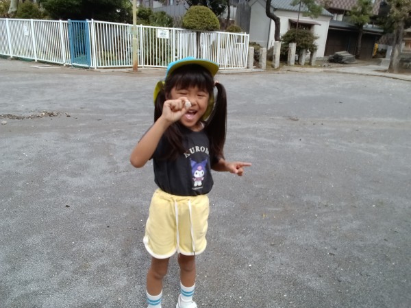 神社へ出発する前、「龍神社で白いキレイな石を探してきて!」というミッションをもらった子どもたち。「そんなのないよ~」「よ~し!ゼッタイに見つけよう!」と言いながら出発しました。久しぶりの龍神社では、回転ジャングルジム、すべり台、ブランコなどの遊具で遊んだり、本日のミッションをクリアしようと石を探したり、かくれんぼなど、好きな遊びを楽しみました。「こんなキレイな石あったよ~!」「こっちも見て~!」「いいな~、石見つけたいな~」と言いながら一生懸命に探している子どもたちでした。