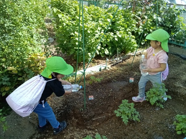 ナスが数個できていたり、じゃがいも、オクラが大きくなっていることに喜んでいた子どもたちです。