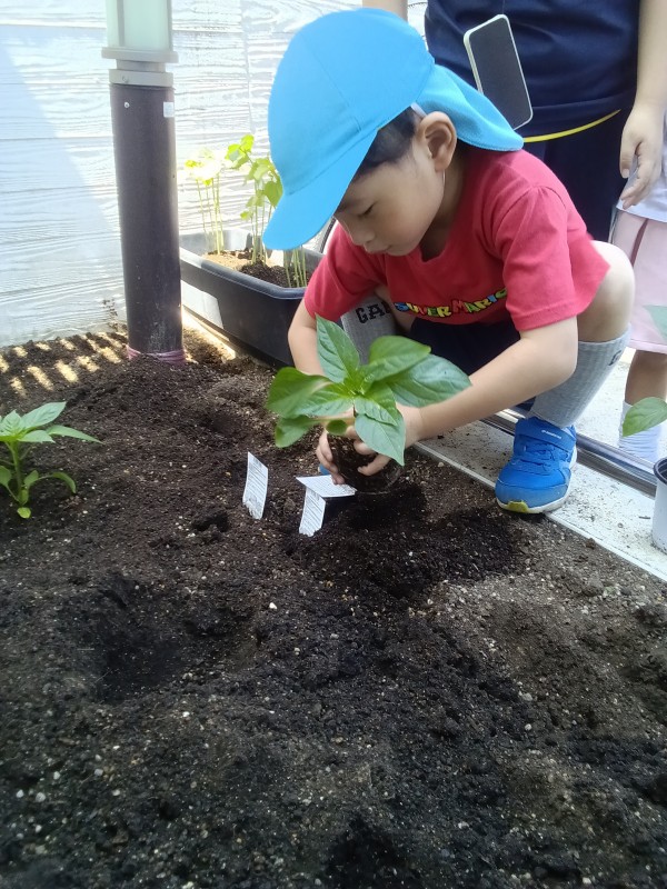 今回は、4月から行っている5歳児ぞう組の食育「野菜栽培・収穫」の様子をお伝え致します。