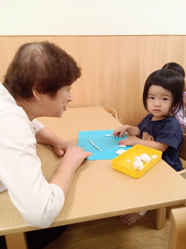 敬老の日の会の際に、祖父母の方々にお声掛けして保育園に遊びにお越しいただいています。