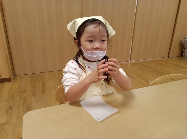 3歳児ぱんだ組と4歳児きりん組は、好きな形に成形を行いました。