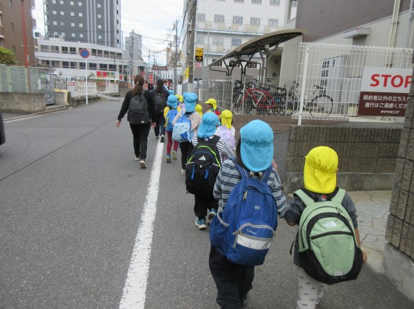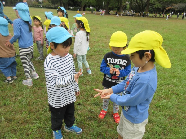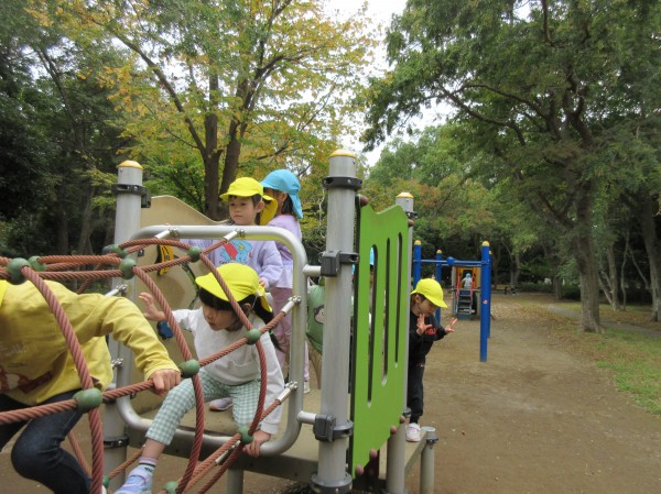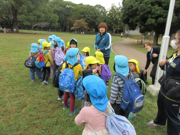 10月、片道約50分程歩いて、4歳児きりん組と5歳児ぞう組の子ども達が「行田公園」へ行ってきました。