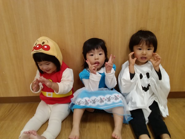 毎年、ハロウィンの日の会では1歳以上の園児は仮装をして登園し、ハロウィンの雰囲気を楽しめるようにしています。