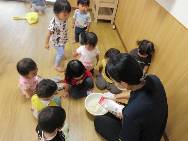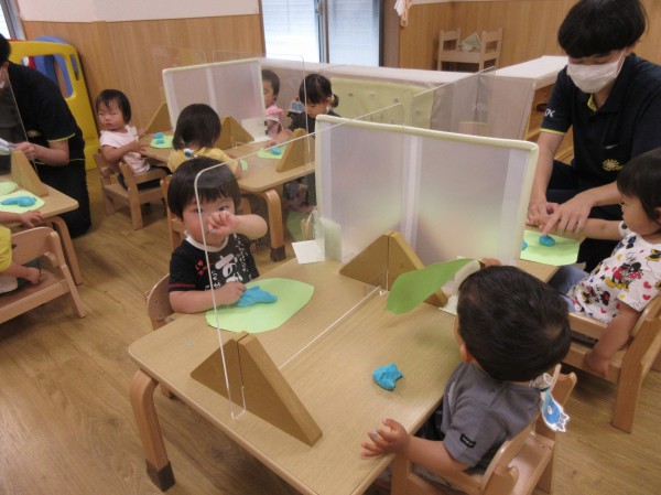 最初は寒天遊び同様、不思議そうに見ている子もいましたが、遊び始めると柔らかい感触が楽しく、集中して遊んでいました!