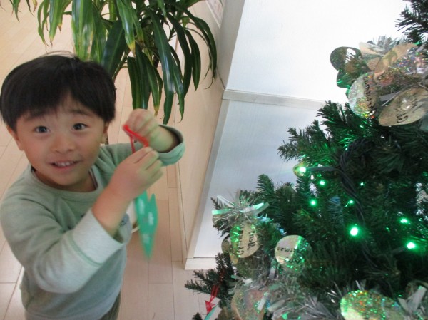 24日にクリスマス会があるのでツリーにオーナメントを飾りつけ