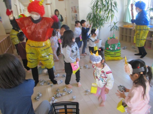 今年は感染症対策で鬼さんたちが各クラスを回ります。