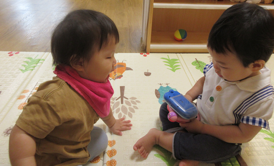 暑い夏の間は水分補給を行いながら、室内で好きな玩具や遊びを見つけ、日々思い思いに遊びを楽しんでいる子どもたち。