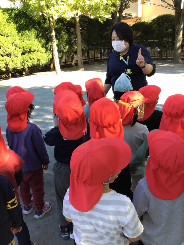 さくら組(3歳クラス)が近所の公園に初めてのお散歩遠足に出掛けました。