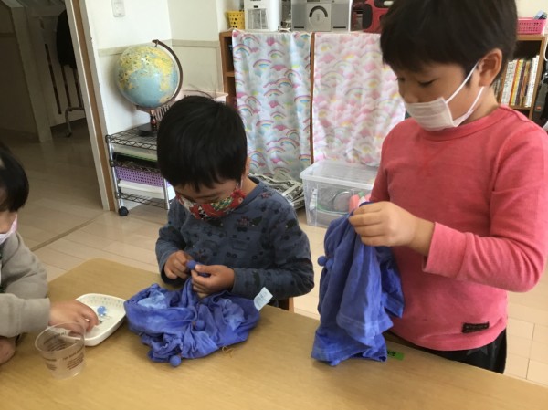 こどもの家・志木中宗岡 ゆり組(5歳)クラスTシャツ作り(染物体験)(^^)/
