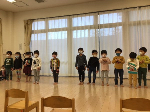 合奏の発表が終わった後は親子で「新聞紙じゃんけん」を行いました。感染症に配慮したソーシャルディスタンスもばっちりのゲームです。