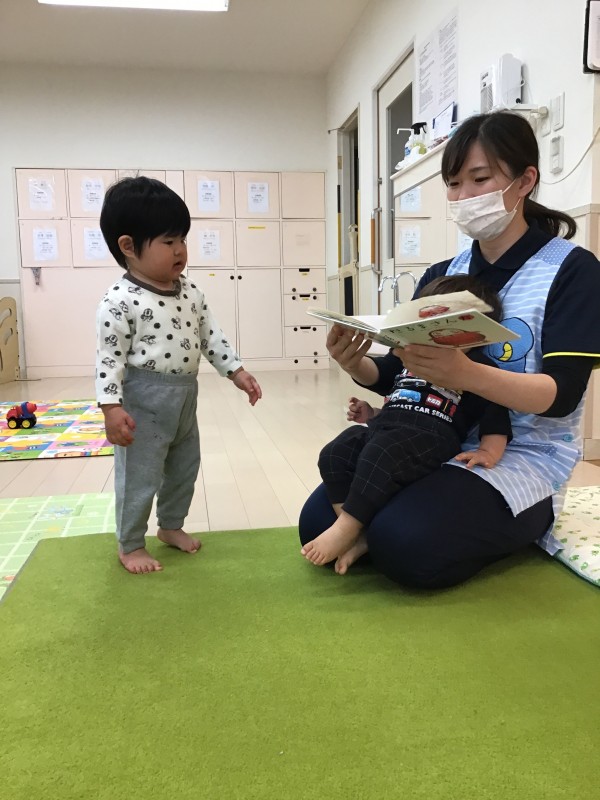 こどもの家・志木中宗岡 つぼみ組(0歳)お昼寝前のひととき♡