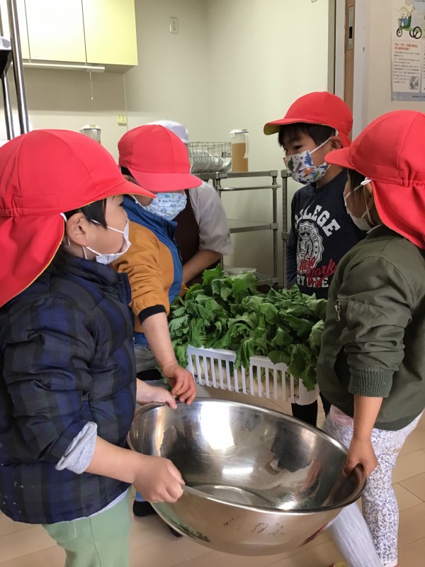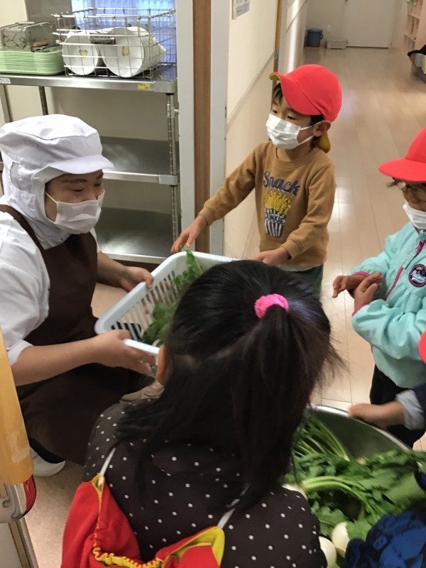 こどもの家・志木中宗岡 絵本給食-さくら組(3歳)のかぶ洗い