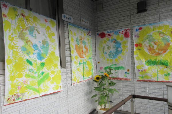 子どもたちの笑顔もひまわりの絵も輝いて見えます。