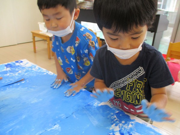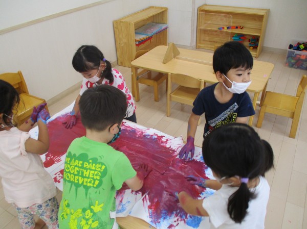 ハンドペインティングを楽しみました♪(3歳 さくら組) こどもの家・志木中宗岡