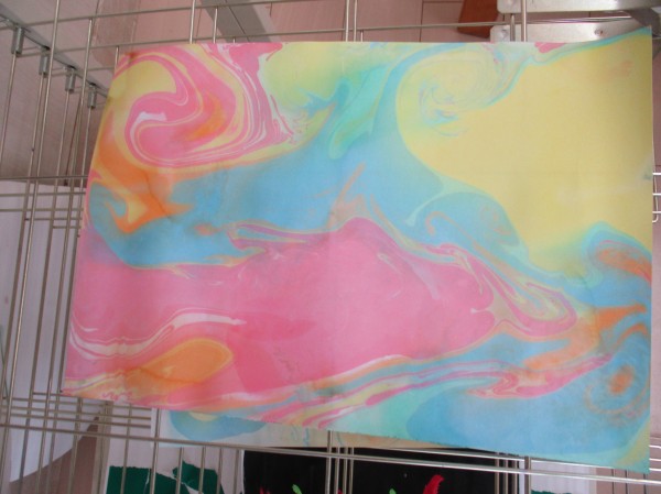 画用紙に色を移してマーブリングの完成です。