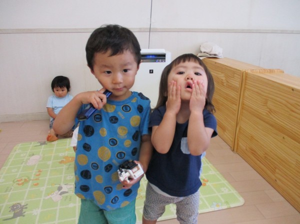外の気温が高く、暑さ指数指数も高い日は室内遊びで楽しく過ごしている子どもたち。