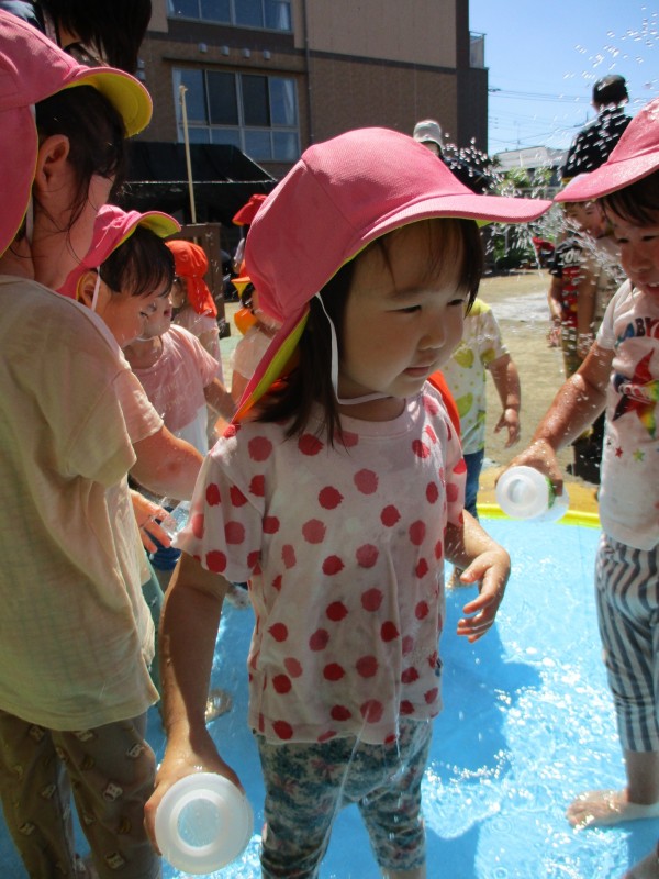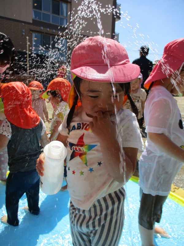 暑さ指数を参考に、水遊びが出来る事を確認してから園庭へLet’s go\(^o^)/